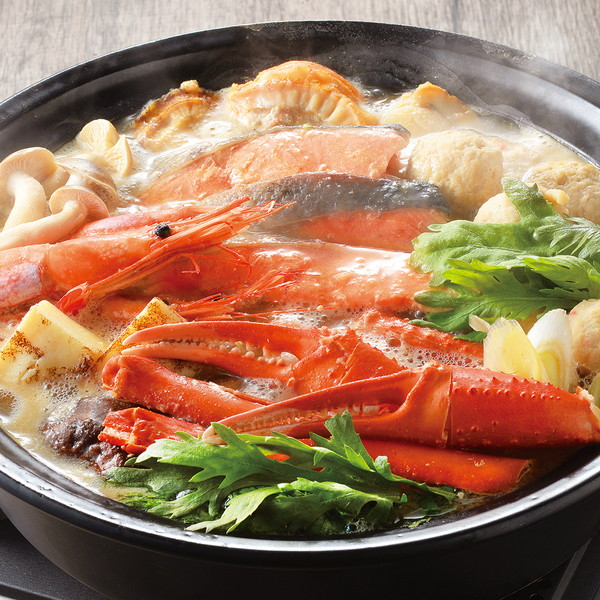 北海道産の鮭や大ぶりな帆立をはじめ、国産紅ずわい蟹などたっぷりの海の幸と、お好み野菜を一緒にお召し上がりください。