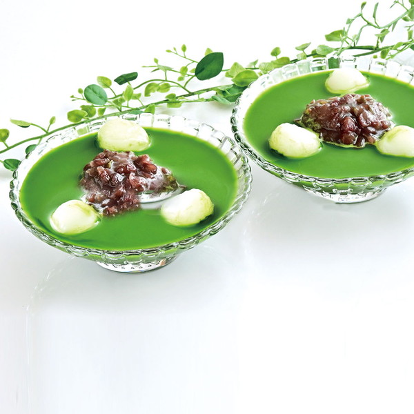 甘さを全く加えない本格的な「おうす」にあんこと白玉を加えた、贅沢なおぜんざいです。