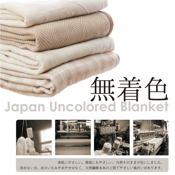 素材そのままの色合いで丁寧に織り上げたソフトな風合いの綿毛布。素肌にやさしい、環境にもやさしい、自然そのままの色です。染めない分、糸のいたみや糸やせがありません。