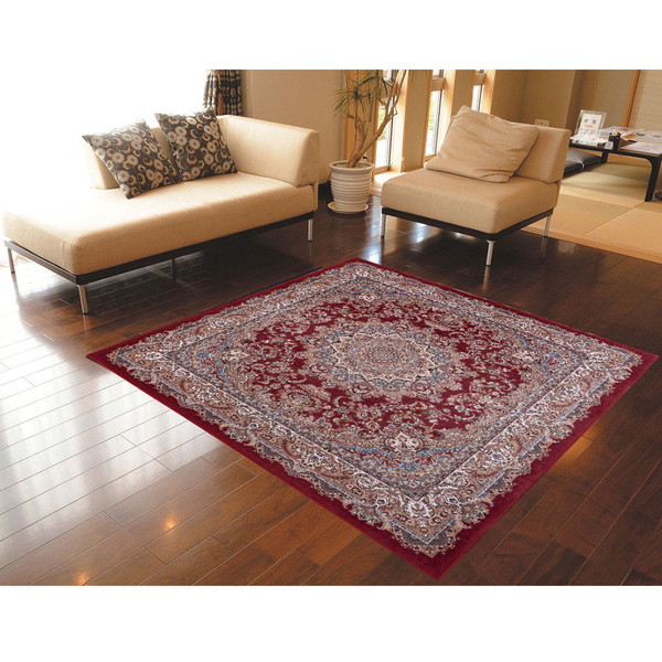 中央に美しい円形のメダリオン柄を配し、唐草模様や花柄が緻密に描かれ、芸術的な装飾美が楽しめます。