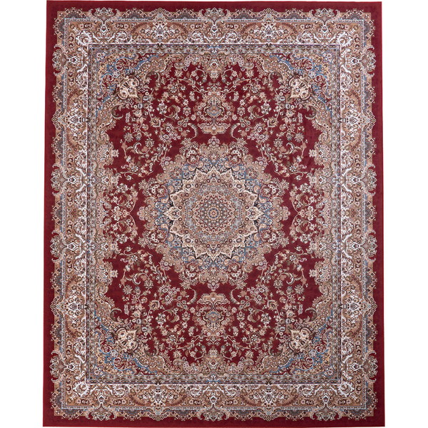 中央に美しい円形のメダリオン柄を配し、唐草模様や花柄が緻密に描かれ、芸術的な装飾美が楽しめます。