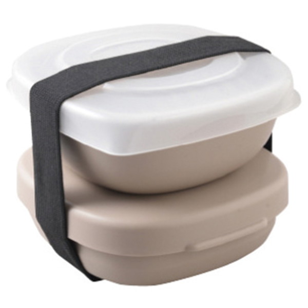 ●サイズ(約)/ご飯がう米わん:幅12.5×奥行12.5×高さ6cm、おかずケース:幅13×奥行12.5×高さ5cm、重ねたとき:幅13×奥行12.5×高さ11cm、ゴムバンド:幅2.5×長さ16cm