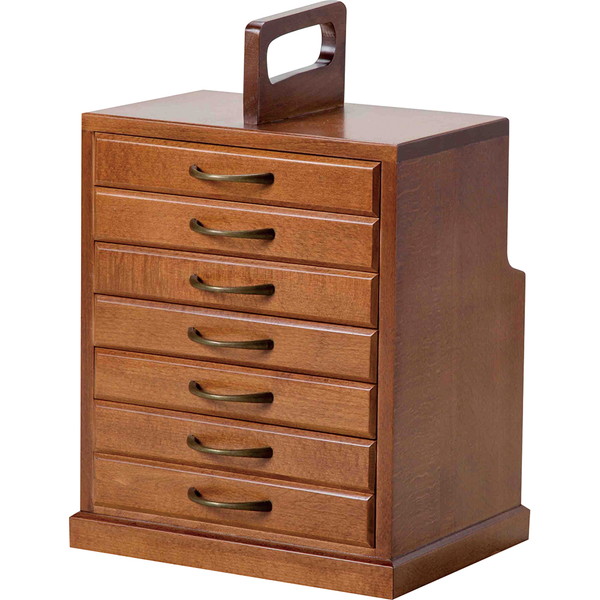 欅の風合いも魅力的な7段引き出しの曜日別薬箱。