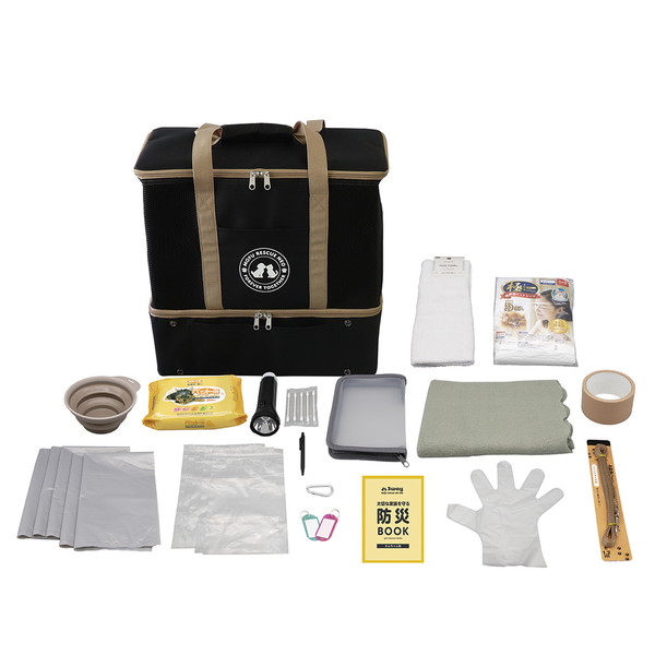 ●内容/3WAYペットキャリー、迷子札、カラビナ、リード、ペットシーツ、消臭ごみ袋、タオル、ペット用ウェットティッシュ、使い捨て手袋、フードボウル、2WAYライト、ブランケット、ガムテープ、チャック袋、ペン、クリアケース、綿棒、大切な家族を守る防災BOOK
