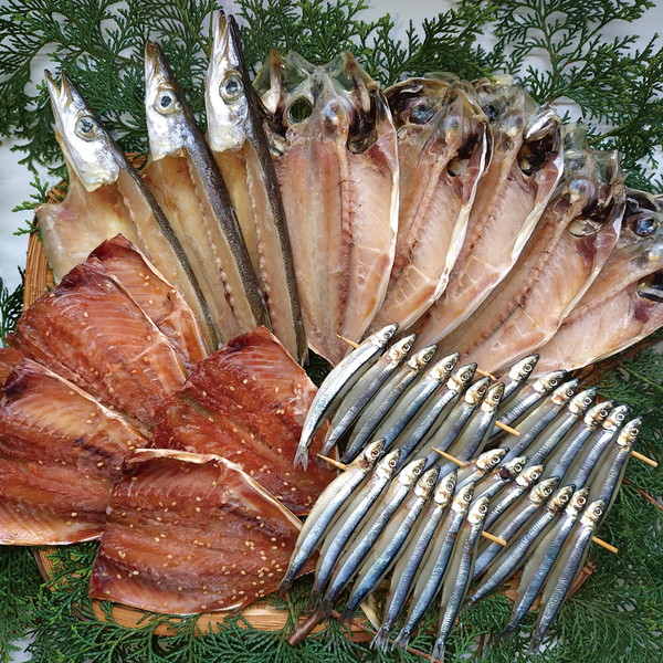 ●内容/アジ開き5枚、黒糖あじみりん5枚、かます開き3枚、きびなご丸干4串